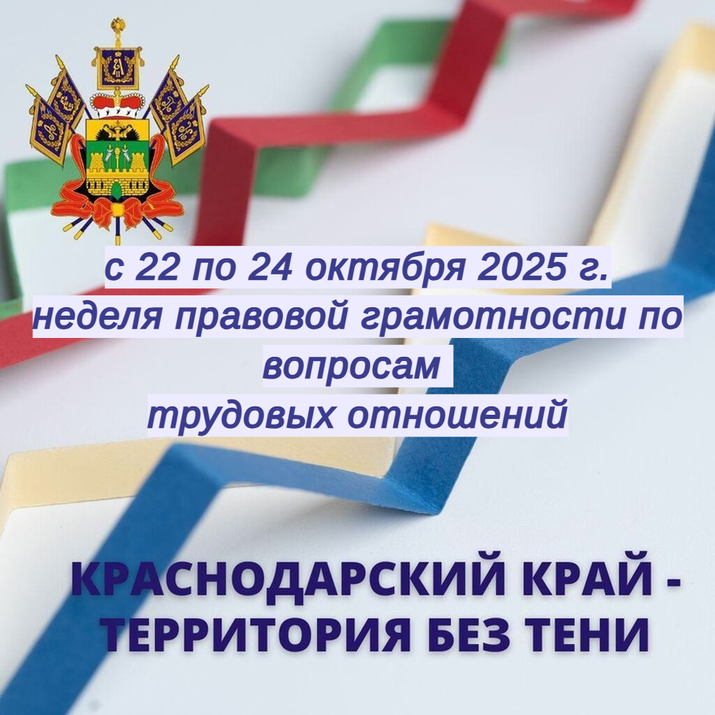 С 20 по 24 октября 2025 года в Краснодарском крае пройдёт неделя правовой грамотности по вопросам трудовых отношений под названием «Краснодарский край — территория без тени».